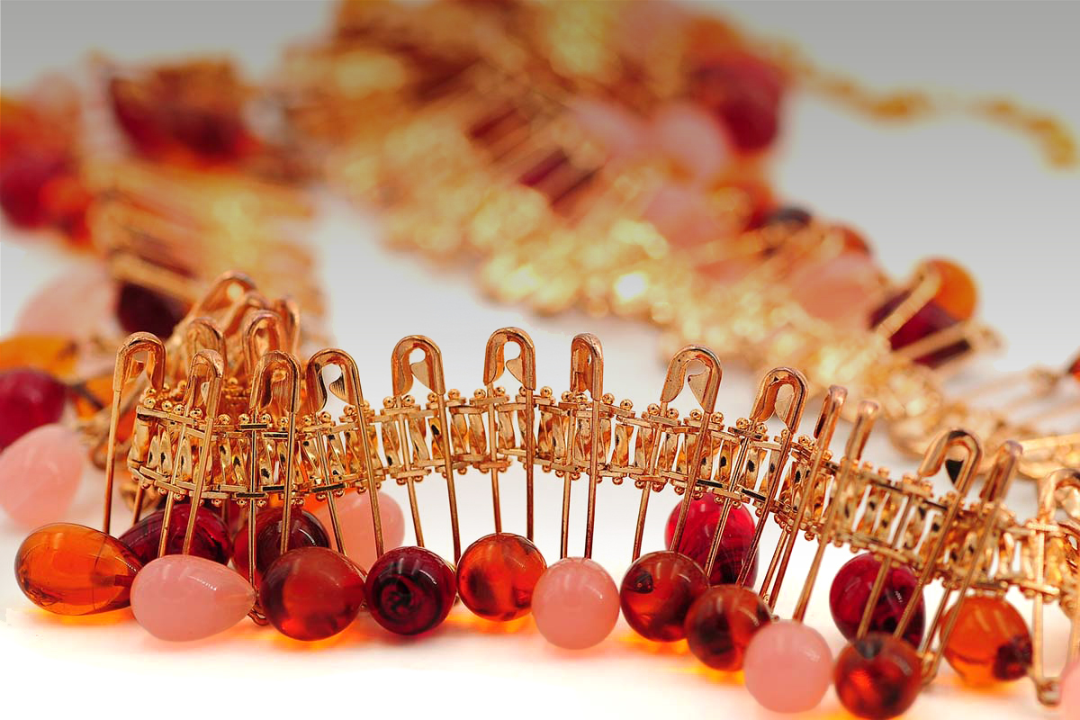 Der anbei abgebildete Gürtel ist ein wahrhaftiges Showpiece für den Laufsteg! Als Grundmaterial wurde Messing verwendet, das anschließend rosé-vergoldet wurde, um ihm einen modischen und luxuriösen Look zu verleihen. Messing ist ein beliebtes Material für Schmuck und Accessoires, da es langlebig, korrosionsbeständig und leicht zu bearbeiten ist. Die bunten Glassteine in Tropfenform sind ein besonderes Merkmal des Gürtels. Die Glassteine wurden speziell für diesen Gürtel entworfen und hergestellt, um eine einzigartige und auffällige Optik zu erzielen. Die Herstellung von Glassteinen erfordert spezielle Techniken, bei denen geschmolzenes Glas in Formen gegossen, geformt und anschließend gehärtet wird. Die hergestellten Glassteine werden anschließend sorgfältig auf den Gürtel platziert und mit einer geeigneten Technik befestigt, um sicherzustellen, dass sie sicher und dauerhaft an ihrem Platz bleiben. Dies kann durch spezielle Klebstoffe, Löten oder andere geeignete Befestigungsmethoden erreicht werden. Nach Abschluss der Herstellung wird der Gürtel einer gründlichen Qualitätskontrolle unterzogen, um sicherzustellen, dass er den hohen Standards entspricht und sowohl optisch als auch funktional einwandfrei ist.